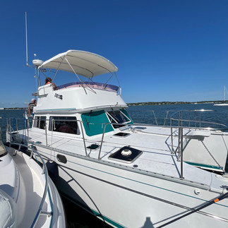 My cousin Matt on ”Bad Fish” stopped by with Neil and other friends. Great to catch up and we can’t wait to do it again! The only picture we got of us rafted together.